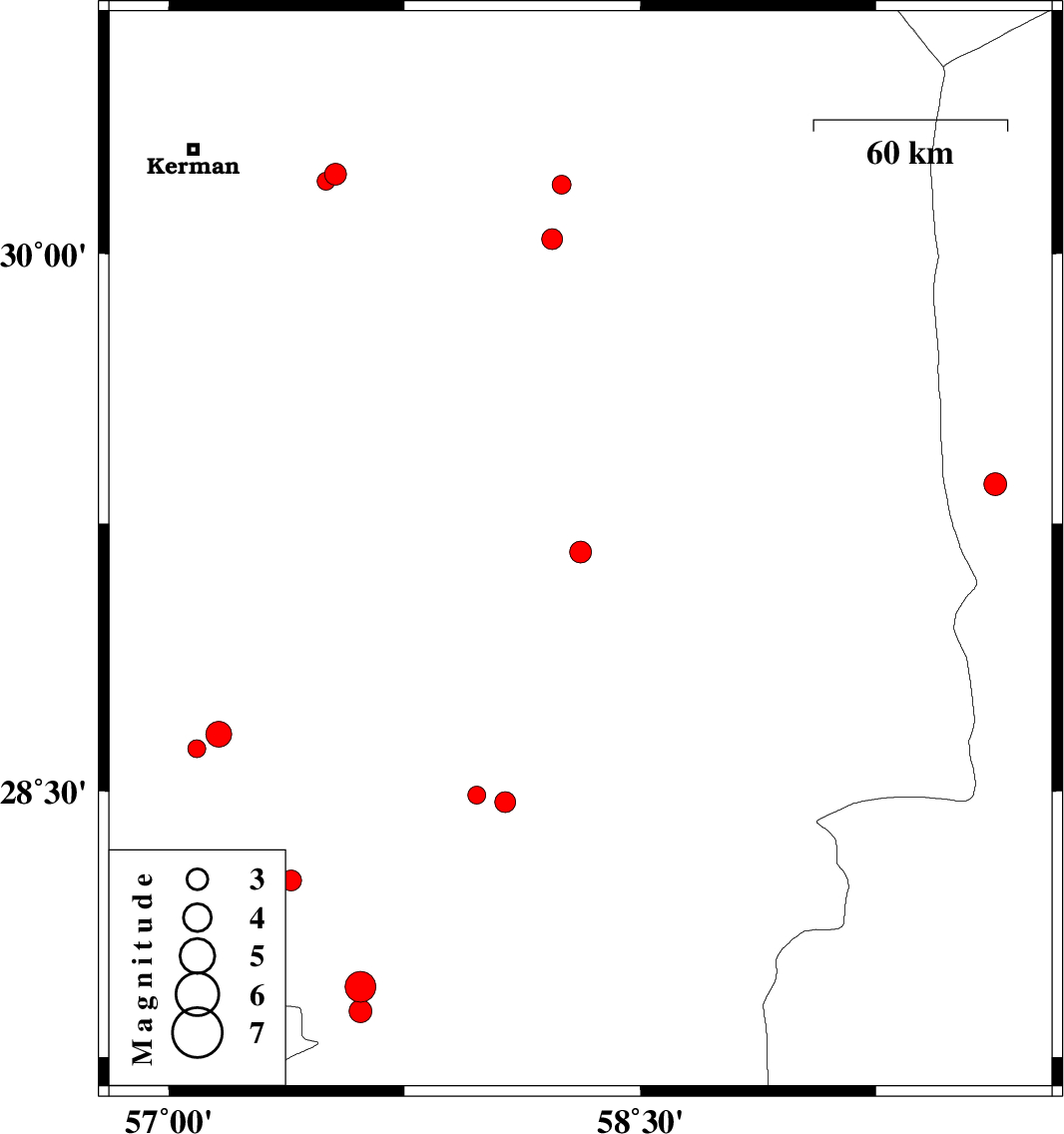 | 2015/05/18 | 11:03:31.3 | 15:33:31.3 | 30.04 | 58.22 | 15 | ML3 | Kerman Province, 105 km North-West of Bam | ||