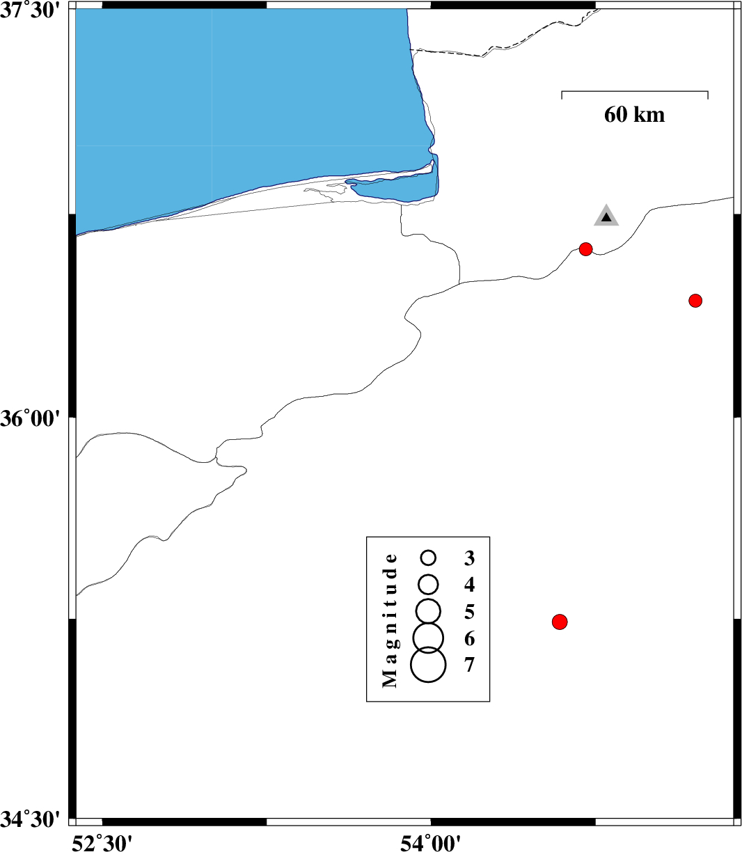 | 2015/05/05 | 02:00:58.8 | 06:30:58.8 | 36.84 | 55.27 | 15 | ML2.8 | Golestan Province, 22 km South-East of Ramian | ||