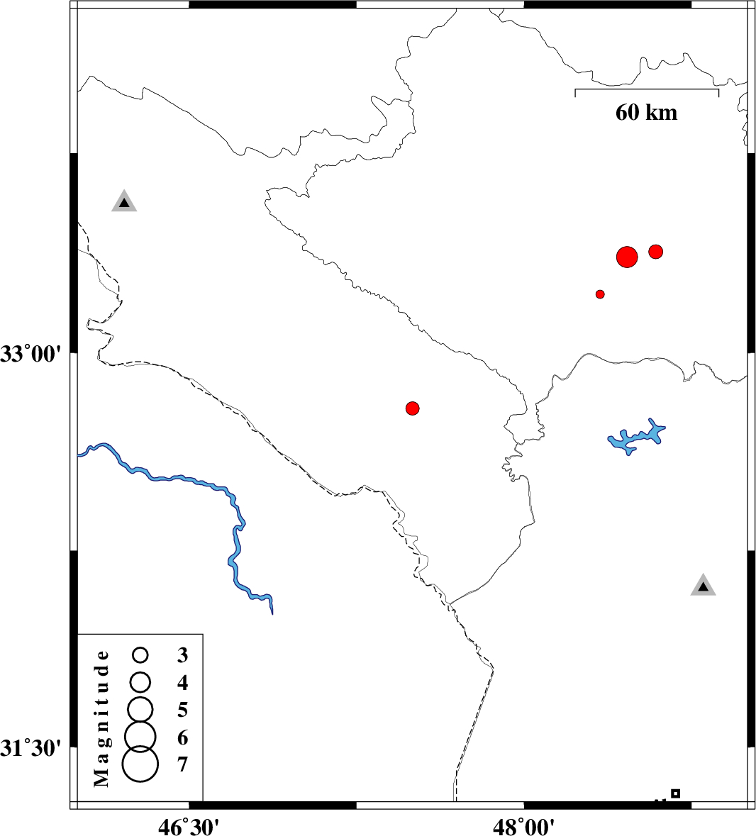 | 2015/05/22 | 04:29:10.9 | 08:59:10.9 | 32.79 | 47.5 | 14 | ML2.7 | Ilam Province, 16 km South of Abdanan | ||