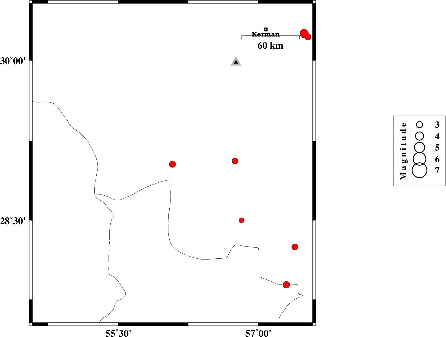 | 2015/05/11 | 09:05:18.2 | 13:35:18.2 | 30.22 | 57.53 | 14 | ML3.1 | Kerman Province, 44 km East of Kerman |
