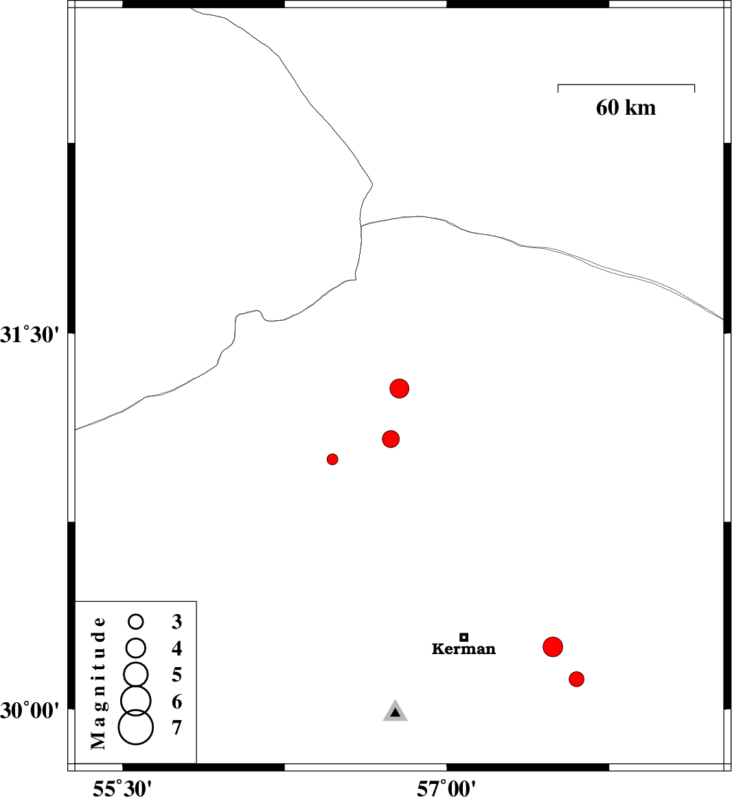 | 2015/05/25 | 16:30:54.4 | 21:00:54.4 | 30.12 | 57.6 | 14 | ML3.1 | Kerman Province, 53 km South-East of Kerman | ||
