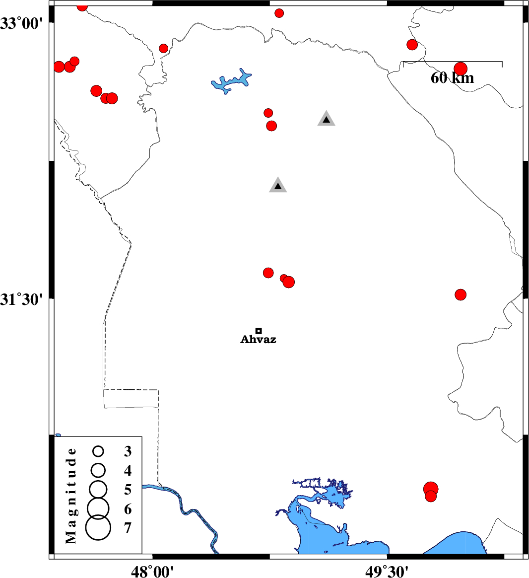 | 2015/06/01 | 17:04:54.6 | 21:34:54.6 | 31.64 | 48.74 | 14 | ML3 | Khoozestan Province, 36 km North of Ahvaz | ||