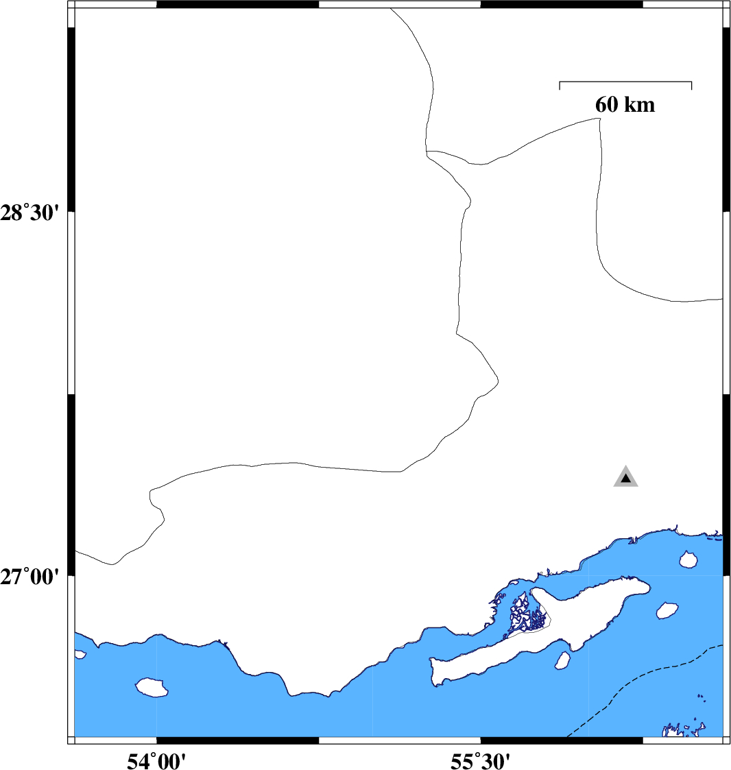 | 2015/06/07 | 22:47:18.3 | 03:17:18.3 | 27.83 | 55.12 | 14 | ML3.2 | Fars Province, 78 km North-East of Lar | ||