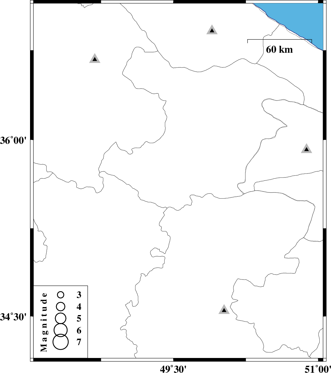 | 2015/06/14 | 04:38:11.3 | 09:08:11.3 | 35.64 | 49.55 | 14 | ML2.7 | Ghazvin Province, 49 km South-West of Takestan |