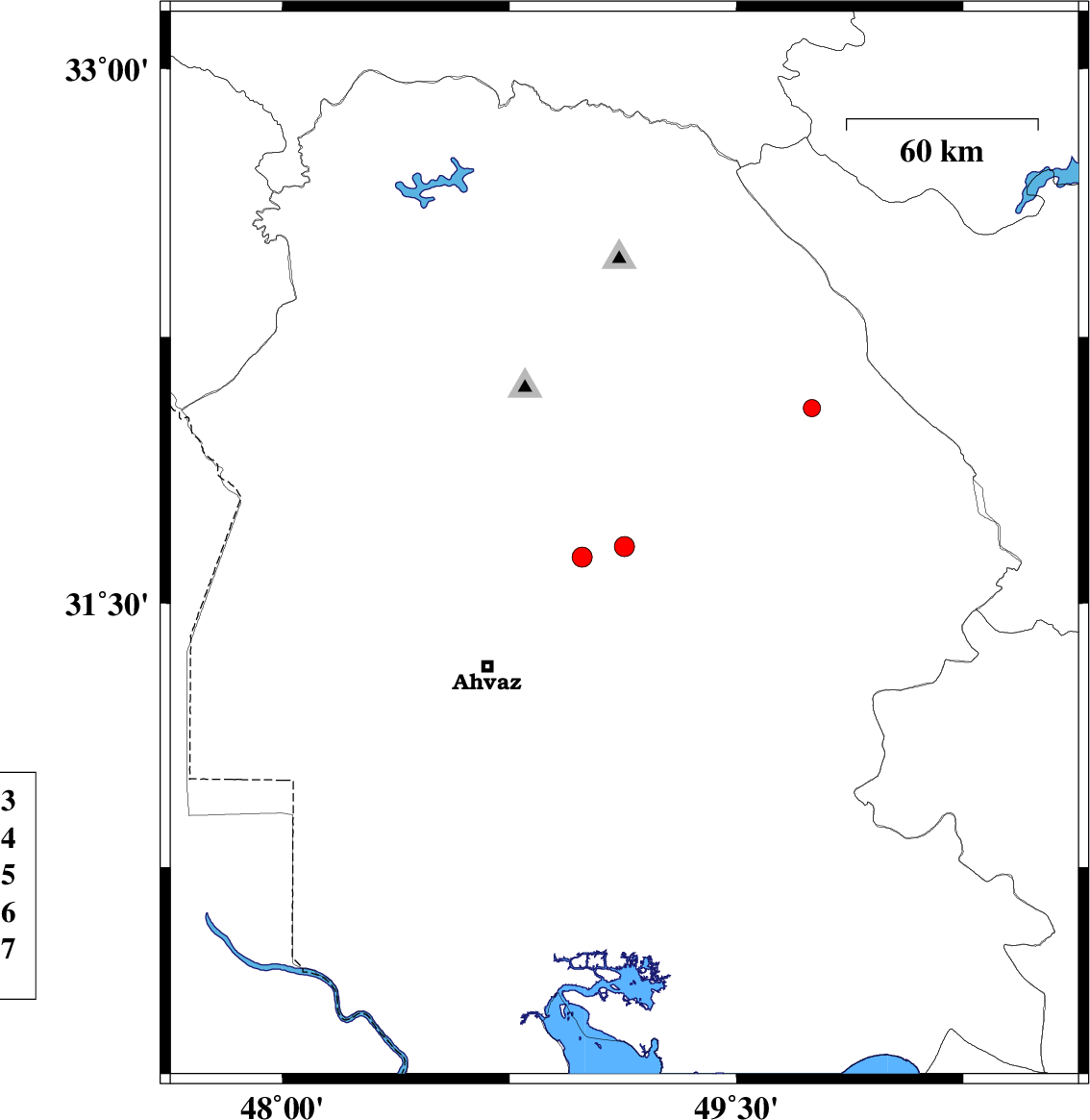 | 2015/06/09 | 03:22:58.5 | 07:52:58.5 | 31.63 | 48.99 | 18 | ML2.9 | Khoozestan Province, 48 km South-East of Shushtar |