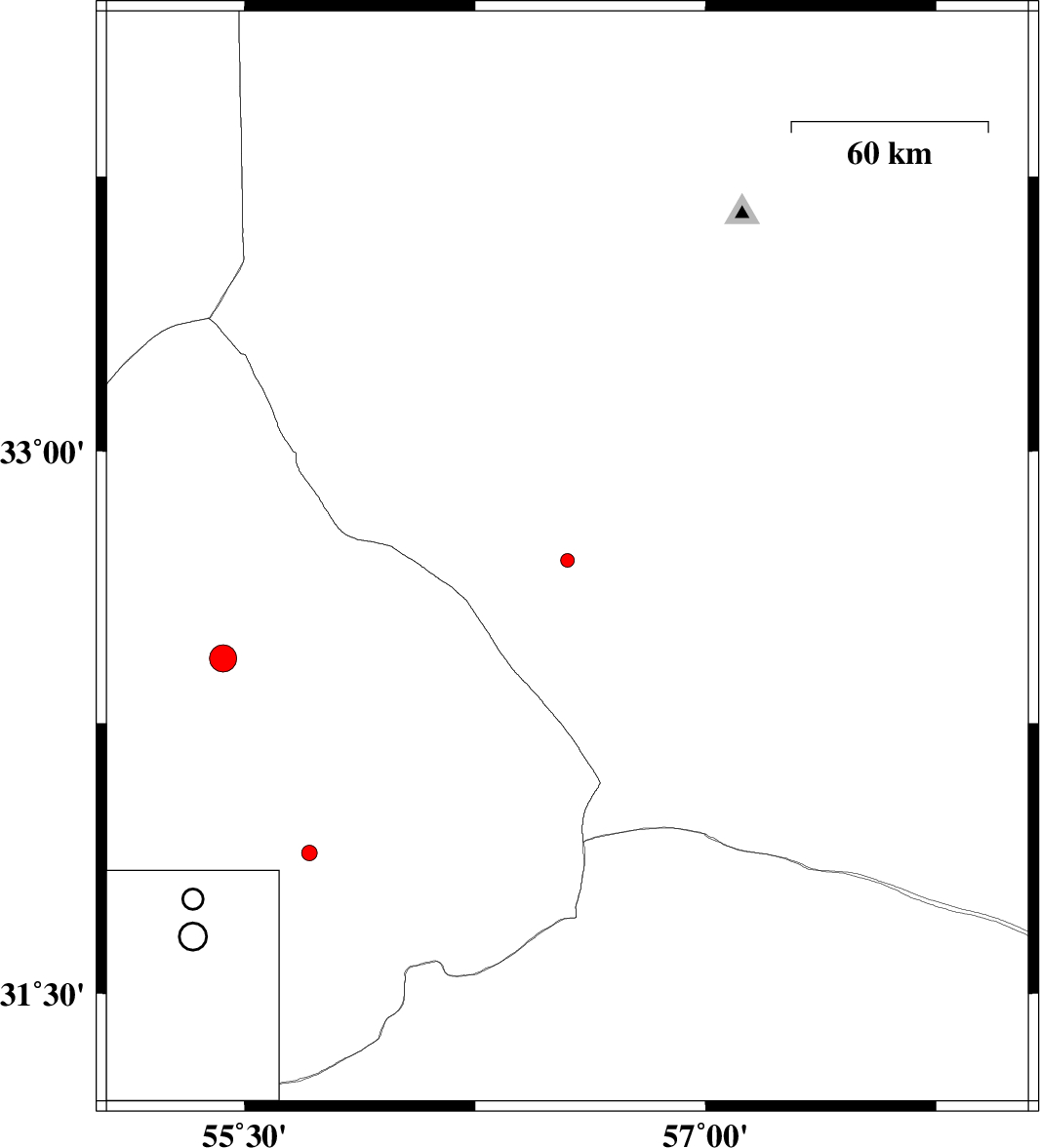 | 2015/06/17 | 23:05:43.2 | 03:35:43.2 | 32.43 | 55.43 | 14 | ML4 | Yazd Province, 91 km North of Bafq |