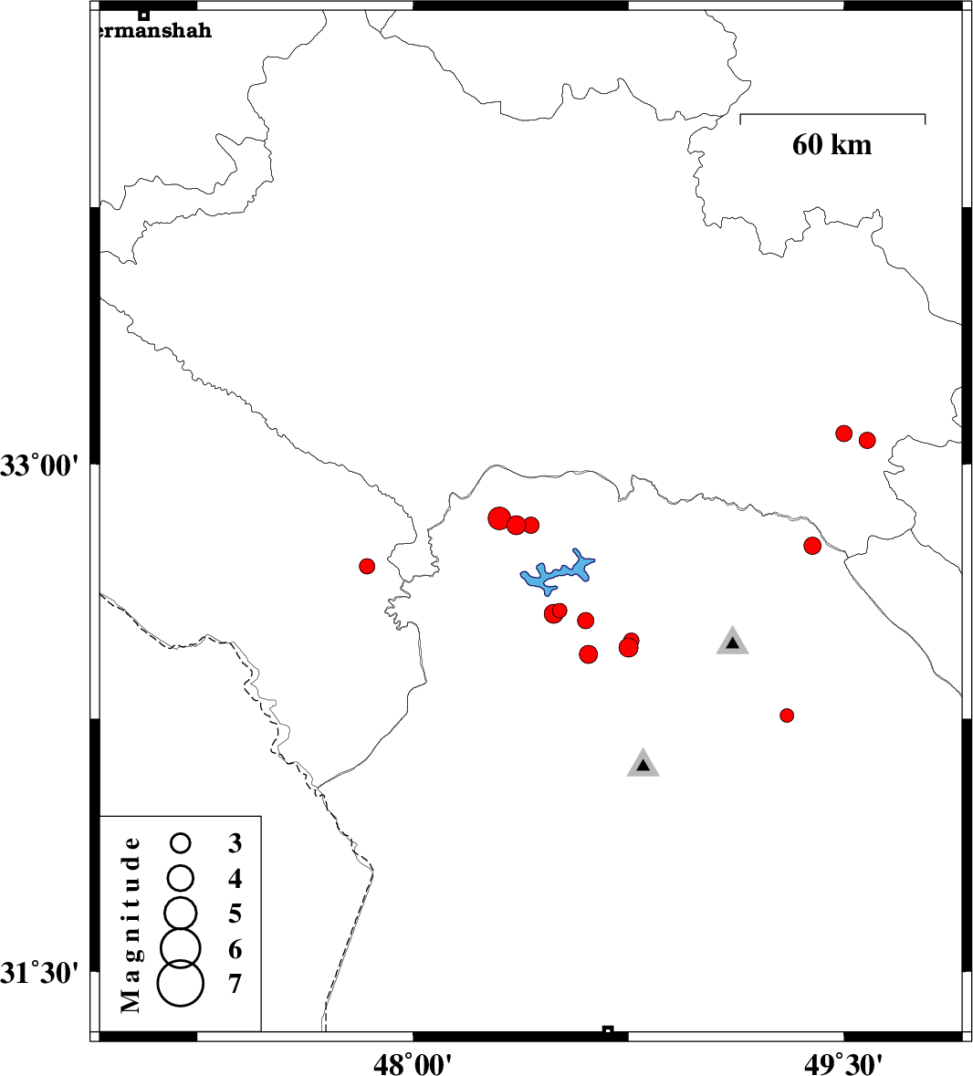 | 2015/06/19 | 22:09:17.0 | 02:39:17.0 | 32.56 | 48.49 | 14 | ML3 | Khoozestan Province, 17 km North-East of Andimeshk | ||