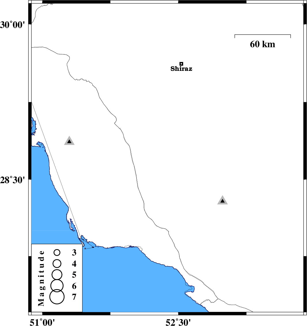 | 2015/06/26 | 05:16:04.2 | 09:46:04.2 | 28.7 | 52.38 | 6 | ML3.9 | Fars Province, 25 km South-West of Firuz Abad |